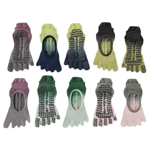Non-slip Dyeing Grip Five Finger Socks Crew Pilates Fitness Cotton Trending Pilates Socks Custom